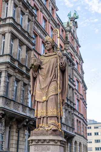 Fototapeta premium The historic bishop Ansgar statue on Trostbrucke bridge in Hamburg, Germany