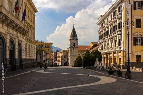 © Fernikon, Fototapeta premium the historic center of Benevento. On the left is the government building, while at the bottom you can see the bell tower that decorates the square