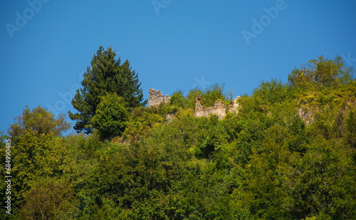 © dragoncello, Fototapeta premium The historic 15th century Ostrovica Castle overlooking Kulen Vakuf village in the Una National Park. Una-Sana Canton, Federation of Bosnia and Herzegovina. Early September