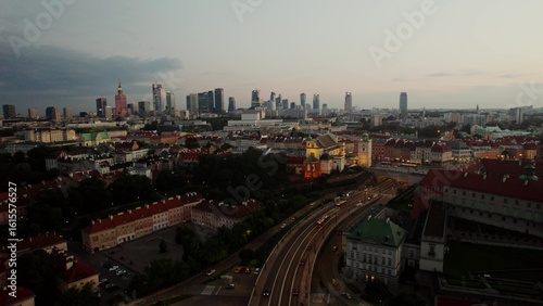 © m-art, Obraz premium The historical center of Warsaw from bird's-eye view. Drone view of the old town