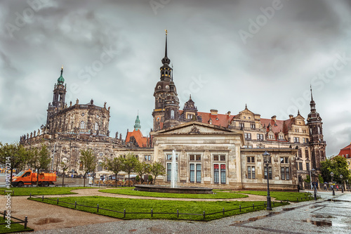Naklejka premium .The historical part of the city of Dresden after the rain. Zwinger. Germany.