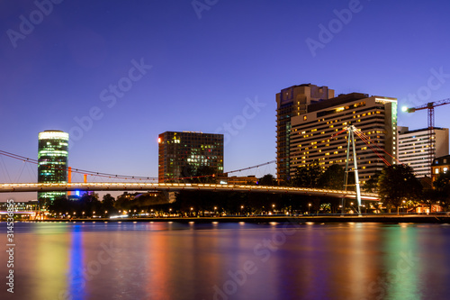 © manfredxy, Fototapeta premium The Holbeinsteg footbridge in Frankfurt acrross Main river at night