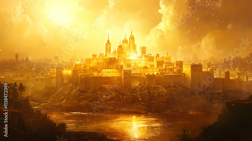 © Thiago, Fototapeta premium The holy city of new jerusalem a revelation of gold. concept religious symbolism, spiritual significance, heavenly city, golden revelation. Heavenly. Illustration