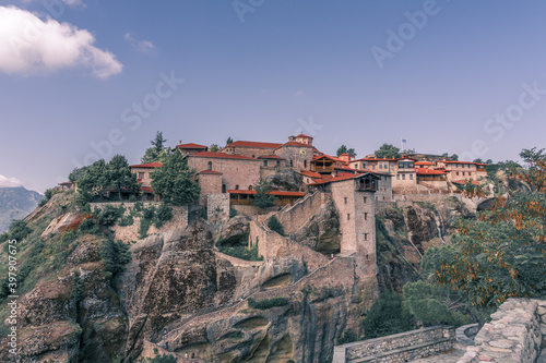 Fototapeta premium The Holy Monasteries of Meteora in central Greece erected on natural rock pillars and hill-like rounded boulders. UNESCO world heritage