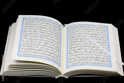 Obraz premium The Holy Quran open pages written in Arabic languag