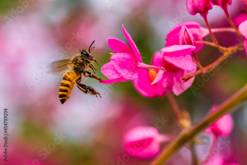 © lessysebastian, Fototapeta premium the honey bee in flowerrs
