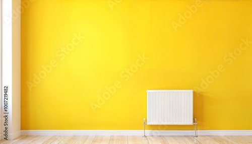 © Rgfx, Naklejka premium The house heating system is depicted by a white radiator on a yellow wall