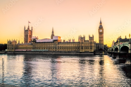 Naklejka premium The House of Parliament over the Thames at sunset, London, United Kingdom