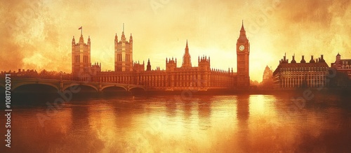 © adiba, Obraz premium The Houses of Parliament in London with the Big Ben at sunset.