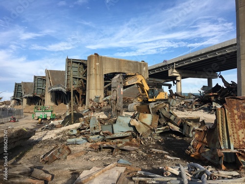 © Maxim, Fototapeta premium The huge ruined bridge in New York. Industrial zone