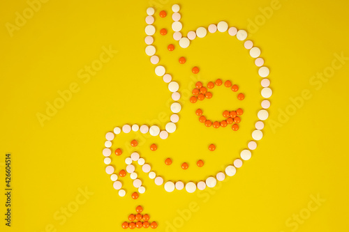© Aleksandr, Obraz premium The human stomach from tablets, the metabolism in the body. Complete digestion process