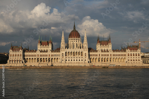 Naklejka premium The Hungarian Parliament Building on the bank of Danube river in Budapest