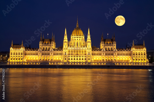 Fototapeta premium The Hungarian Parliament in the full moon night