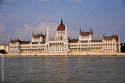 © Raquel Pedrosa, Fototapeta premium The Hungarian Parliament on the Danube River in Budapest, Hungary