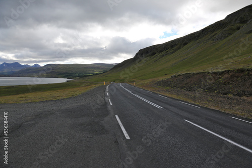 Naklejka premium The Hvalfjarðarvegur otherwise known as Route 47 is a highway in western Iceland that runs around the Hvalfjörður fjord..
