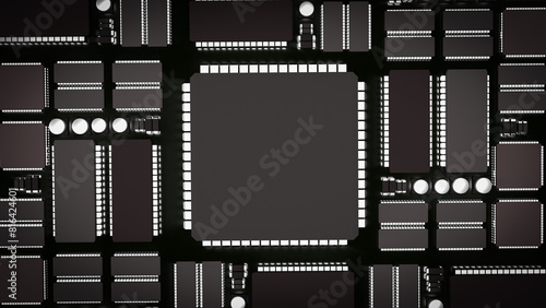 © niphon, Obraz premium The Ic and pcb Board for technology or it concept 3d rendering.