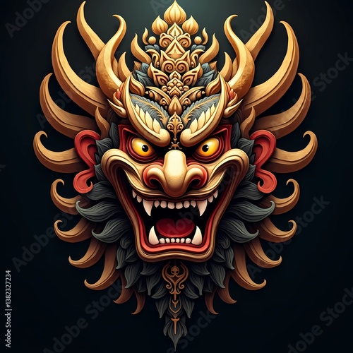 © Trio, Fototapeta premium the iconic Barong mask from Balinese mythology, emphasizing its ornate details and symbolic elements