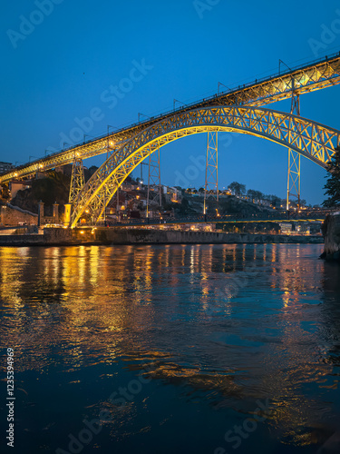 © anammarques, Obraz premium The iconic Dom Luís I Bridge, illuminated against the night sky, stands as a symbol of Porto s industrial heritage and architectural beauty.