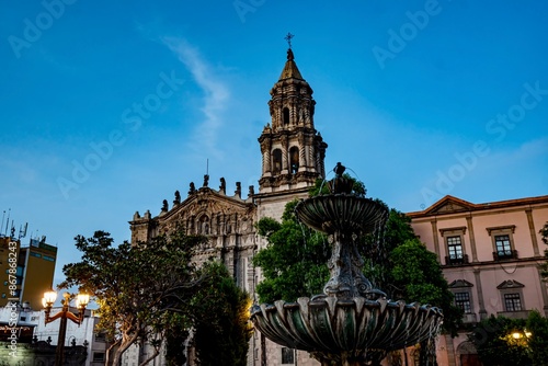 © RebeccaDunnLevert, Fototapeta premium The Iglesia Templo del Carmen in the City Center of San Luis Potosí at Dusk