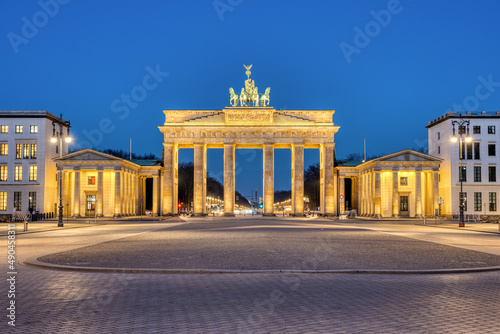Fototapeta premium The illuminated Brandenburg Gate in Berlin at dawn