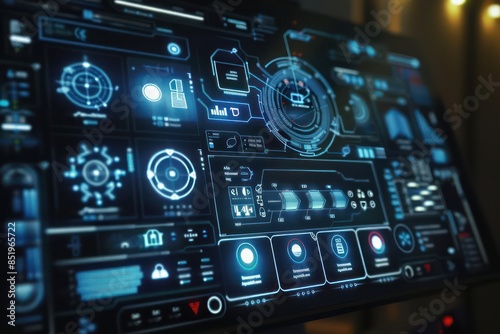 Fototapeta premium The illuminated touch interface of a hightech smart home control panel