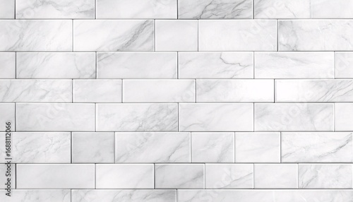 Fototapeta premium The illustration shows a wall of rectangular white marble tiles with subtle gray veining, arranged in a repeating pattern.