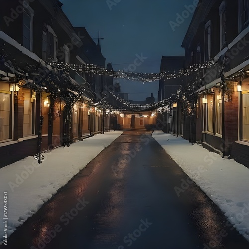 © Dreams, Obraz premium The image displays a charming snow-covered street festive mood