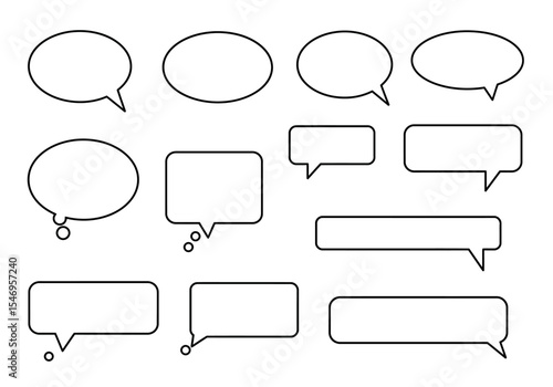Fototapeta premium The image displays a collection of twelve distinct outlined speech bubble shapes varying in form and size