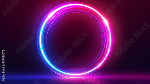 © Erwin, Obraz premium The image displays a radiant neon circle with striking blue and pink hues against a dark backdrop, epitomizing futuristic and vibrant digital art expressions.