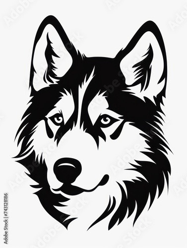 Naklejka premium The image features a black and white drawing of a wolf's face. The background is plain white.