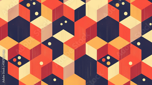 Obraz premium The image features a geometric pattern with alternating red and orange hexagons, some of which contain white dots