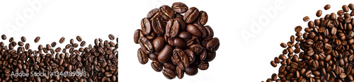 © Zaleman, Obraz premium The image features a pile of coffee beans on a white background, highlighting the texture from a top-down perspective