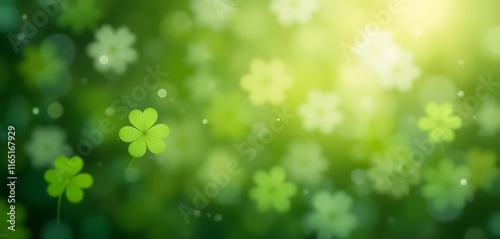 Fototapeta premium The image features a soft, blurry green background with various shades of light and dark green. St. Patrick's Day