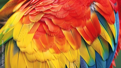© Afaq, Obraz premium The image is a close-up of a bird's vibrant yellow red and blue plumage.