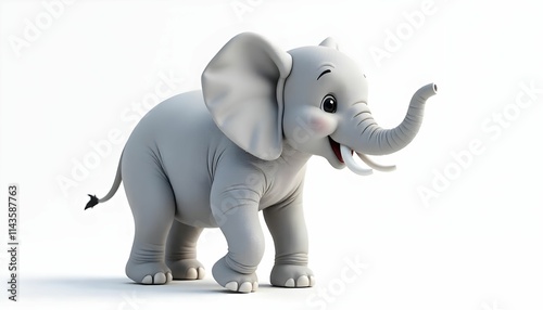 Obraz premium The image is a 3D rendering of a small elephant. The background is plain white, making the elephant stand out.