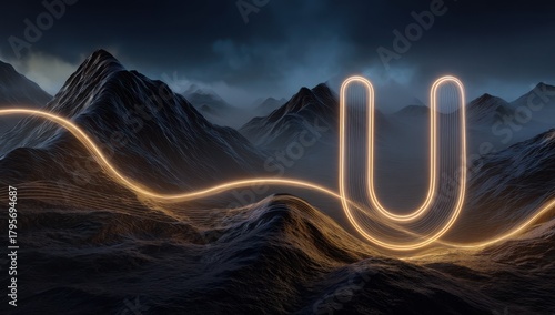 Naklejka premium The image is a mountain range with a glowing letter U in the middle