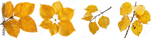 © Zaleman, Fototapeta premium The image of a Golden Birch Leaf In Autumn stands out with its vivid colors and detailed texture, presented on a transparent background in a png file