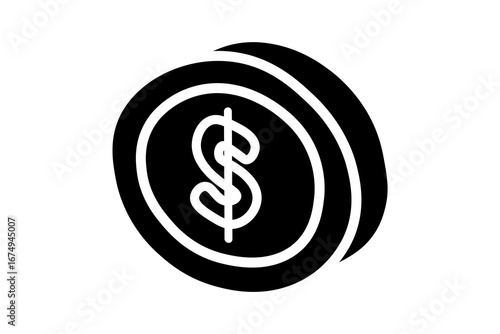Obraz premium The image shows a black and white isometric icon of a coin.