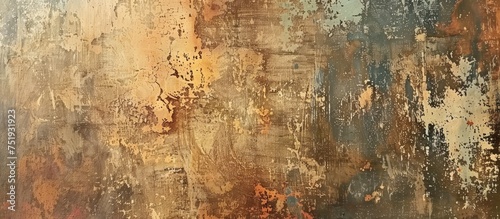 Obraz premium The image shows a brown and black wall with peeling paint, revealing layers...