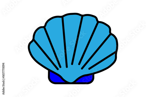 © Zaqiyul, Fototapeta premium The image shows a simple illustration of a seashell. The shell is light blue with black outlines and vertical lines that emphasize its ridges.
