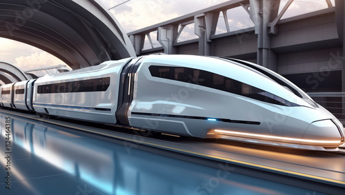 Fototapeta premium The image shows a sleek, futuristic train with large windows