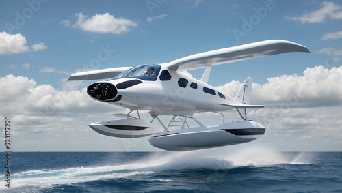 © saeedkhan, Fototapeta premium The_image_shows_a_white_planelike_boat_called_a_hydrof