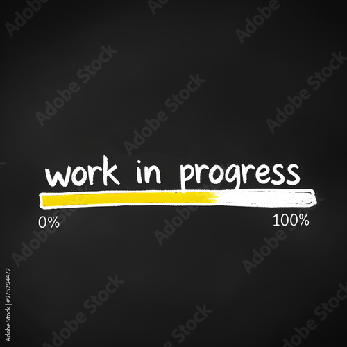 Obraz premium The image shows a 'work in progress' bar on a blackboard, partially filled in...