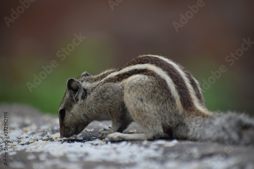 Fototapeta premium The Indian palm squirrel or three-striped palm squirrel (Funambulus palmarum)...