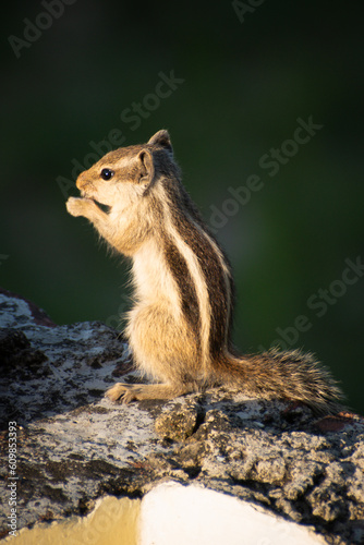 Fototapeta premium The Indian palm squirrel or three-striped palm squirrel is a species of rodent in the family Sciuridae found naturally in India and Sri Lanka.