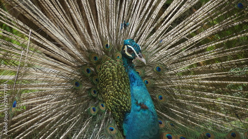 © craigansibin, Obraz premium The Indian peafowl or blue peafowl, a large and brightly coloured bird, is a species of peafowl native to South Asia, but introduced in many other parts of the world