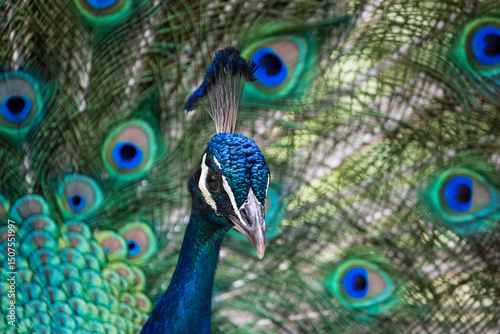 © Vine.Photographic, Obraz premium The Indian Peafowl (Pavo cristatus), also known as the Peacock, Common Peafowl, or Blue Peafowl.
