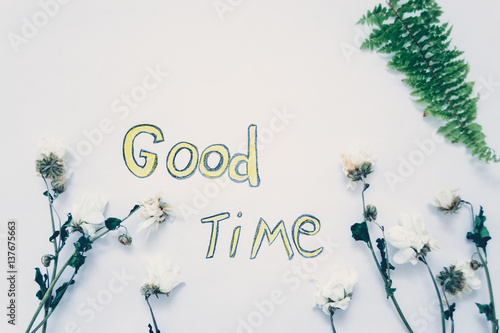 © prokop.photo, Fototapeta premium The inscription on a white background with the leaves of plants