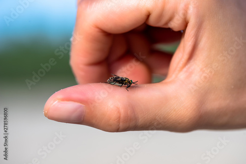 © марина кадырова, Fototapeta premium the insect in the woman's han
