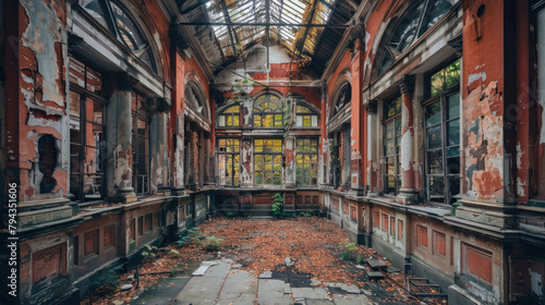 © Art AI Gallery, Fototapeta premium The inside of a building is empty and has a lot of damage